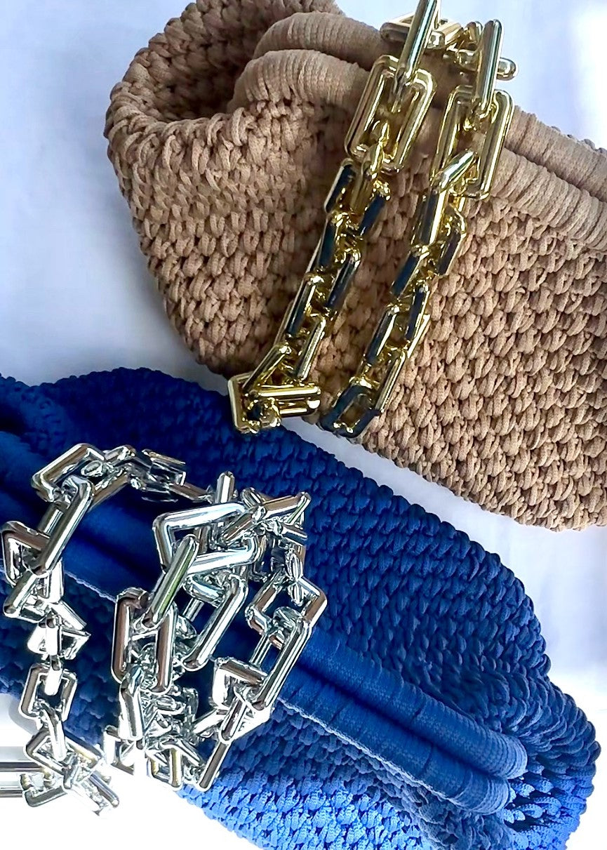 - Disponibile con una tracolla a catena (lunghezza cm 55) o in parte realizzata all'uncinetto su richiesta per indossarla a spalla. Se al momento dell'ordine scegli l'opzione "con tracolla", verrai contattata successivamente all'ordine per definire i dettagli.