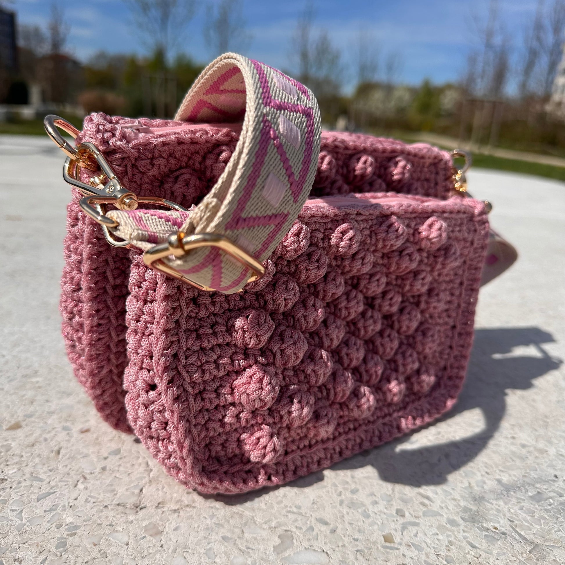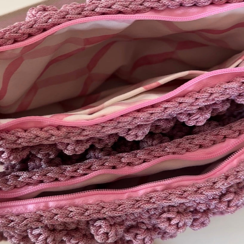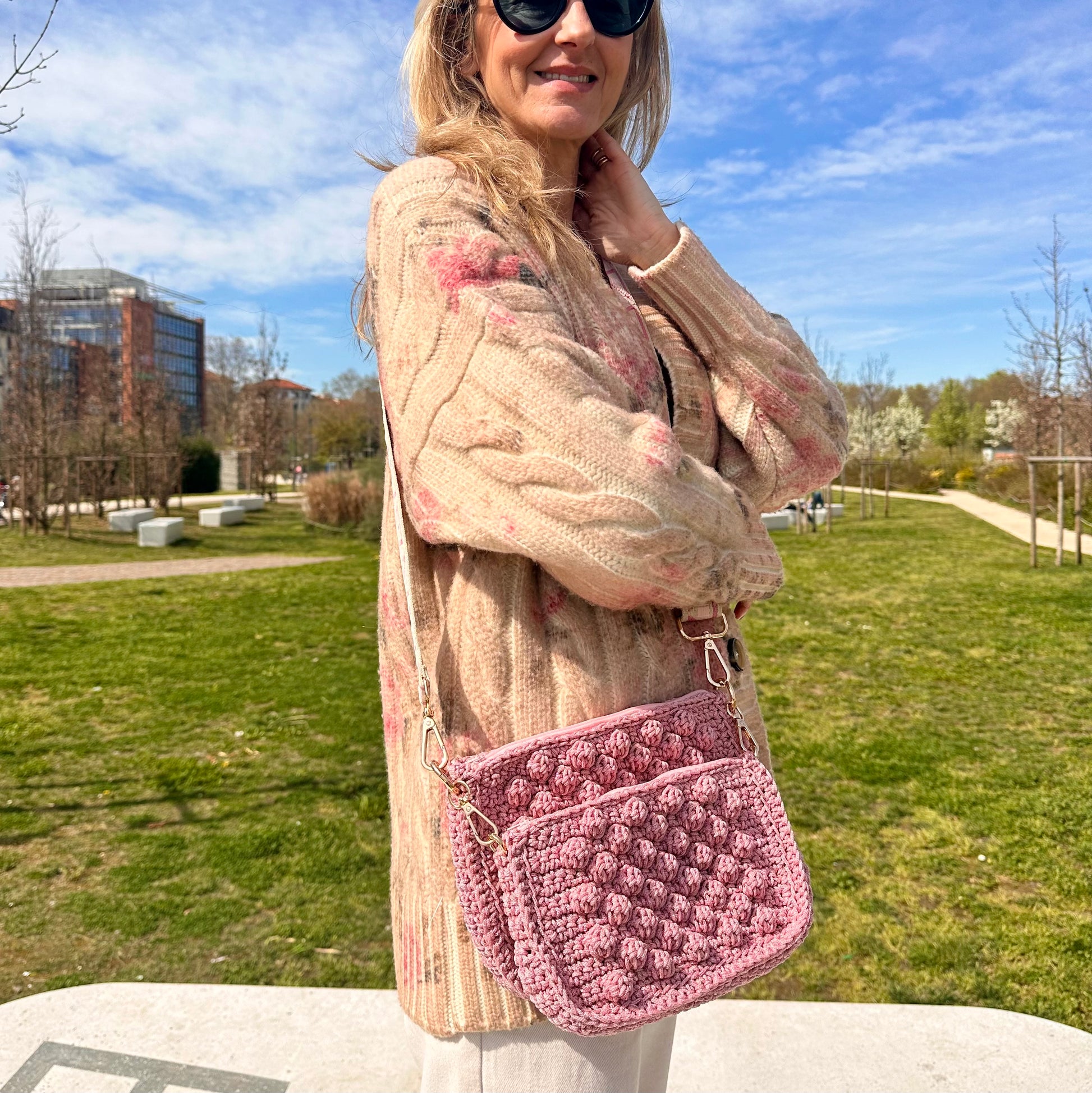 - Un'originale borsa all'uncinetto composta da due pochette, entrambe lavorate con il punto nocciolina.