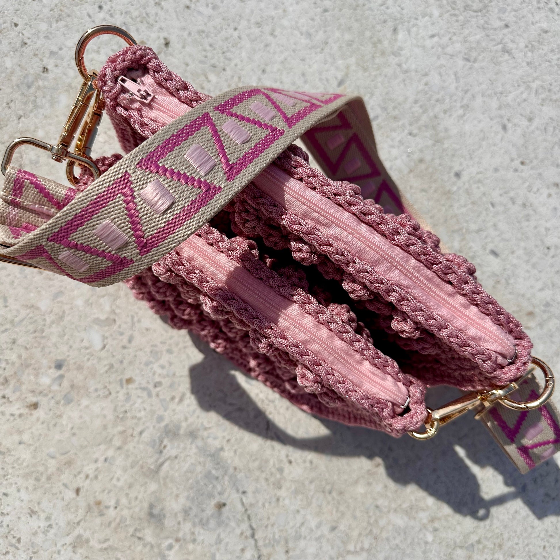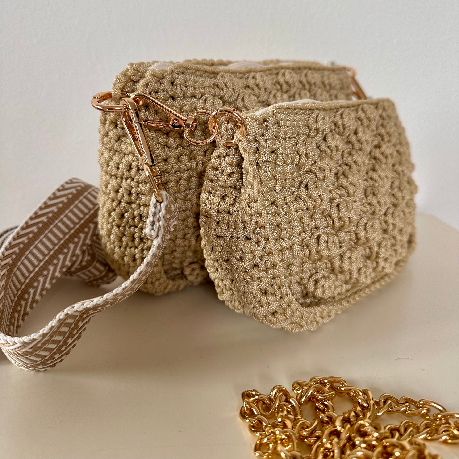 - Grazie ai moschettoni removibili e alla tracolla in tessuto e alla catena dorata potrai staccarle e usarle separatamente a seconda dell'occasione.